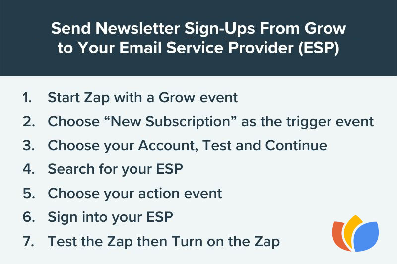 With our pre-made Zaps, you can add new subscribers from Grow to Mailchimp, Convertkit, Flodesk, Mad Mimi or MailerLite. We created pre-made Zaps for other ESPs as well so you’ll want to take a look at the Grow Integration Page for more details.