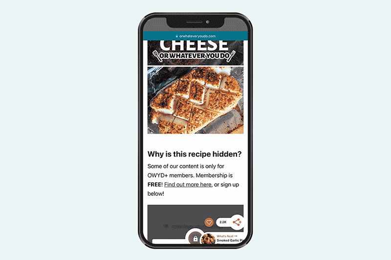 During testing, we’ve seen creators use Exclusive Content to lock full recipes, printables, digital downloads and how-to instructions! Anything that is your “Most Valuable Content” can be locked to encourage users to sign into Grow.